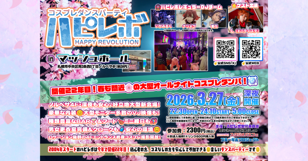 2026年3月27日(金)に開催される 「ハピレボ in マッシュホール」 にて、
