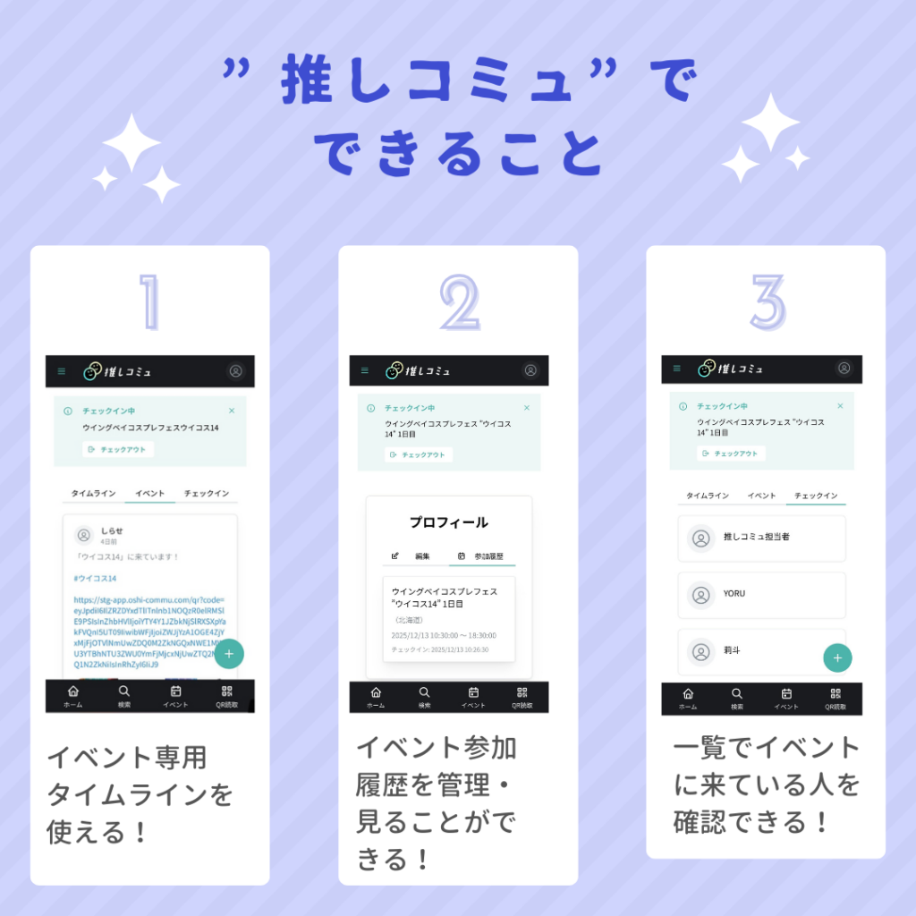 たくさんの方の「推しコミュ」でのチェックインをお待ちしております!